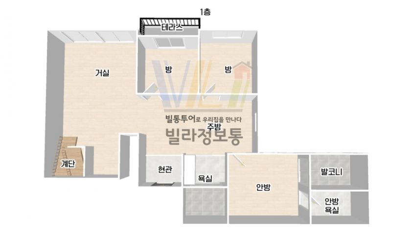 ■ 면적 만족감 높은 3룸이에요. 공간 활용성에 더해 독립적인 복층형 테라스를 갖추고 있어요.