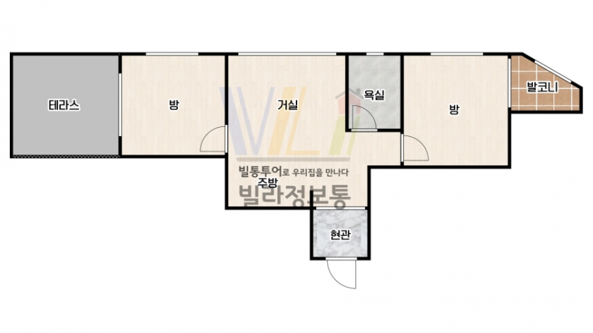■면적 넓은 2룸 타입에 테라스를 갖추고 있어요.