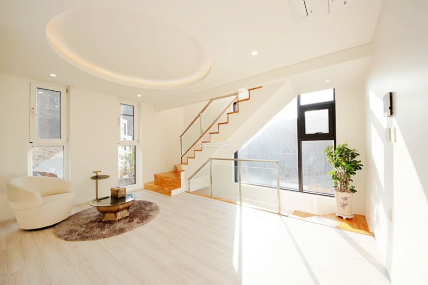 용인신축빌라는 맛집이 많기로 유명한 처인구 능원리 레이크 사이드 CC 부근에 위치한 타운하우스에요~ 대지면적 전용 103평, 건축면적 약 63평으로 벙커 주차장에 2대 주차 가능하며 계단을 올라가면 마당과 현관을 거쳐 진입 가능한 구조입니다. 내부는 1층과 2층이 20평, 3층도 12평 정도 되어 층별로 넉넉한 면적을 자랑합니다. 능원리는 분당, 광주, 용인의 중간지점에 위치해 있어 분당 생활권, 광주 생활권, 용인 생활권까지 모두 누릴 수 있는 트리플 생활권입니다. 판교까지 20분, 강남은 40분 이내로 진입 가능하며, 신세계 백화점까지 차량 10~15분 거리여서 쇼핑이나 외식하기도 좋습니다. 자차로 5분 정도의 거리에 유치원, 어린이집, 초등학교가 있으며, 분당 승마클럽과 에버랜드, 호박 등불마을 등 다양한 즐길 거리도 있네요~ 주변에는 문수산과 향수산이 인접해 있어 숲세권 그 자체라 깨끗한 공기로 상쾌해지는 느낌입니다.