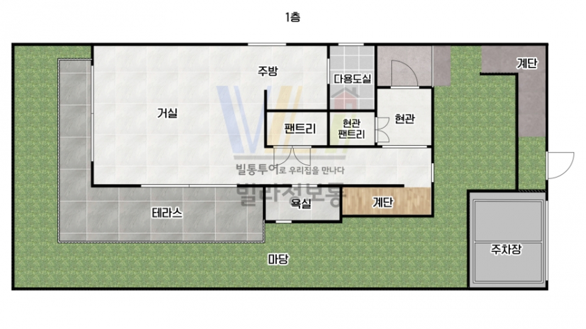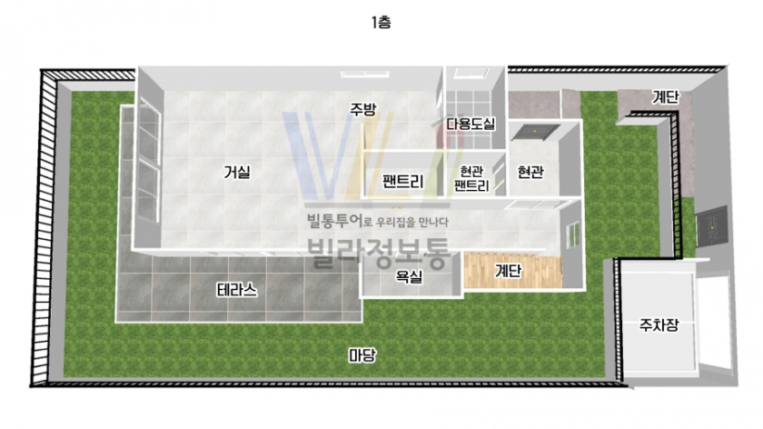 ■ 마당이 아주 넓게 있으며, 3층에는 테라스도 넓게 마련되어 있어서 바베큐 파티나 공간 활용면에서 뛰어납니다.