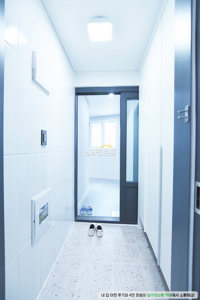 현관에서 거실과 주방이 완전히 감추어져 있어요.