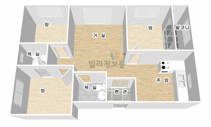 주방, 욕실 환기창이 시공돼 있어요.