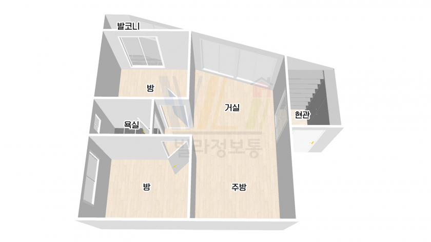 ■ 문학동신축빌라 현장은 거실 및 발코니 공간이 사선으로 꺽여 있어요.