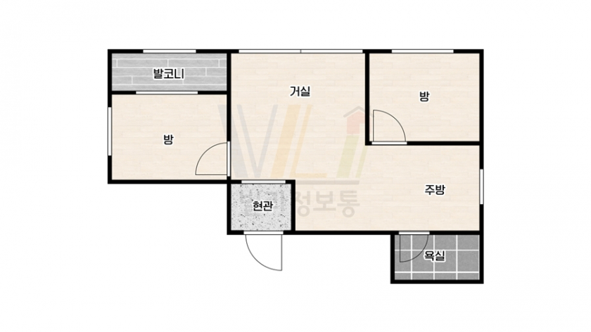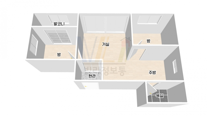 분리된 거실과 주방, 반듯한 , 주방과 욕실의 환기창 좋은 내부 구조를 갖췄습니다.