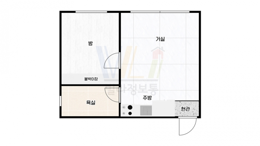 반듯한 구조 1.5룸 타입으로 공간을 넓게 활용하고픈 1인 가구를 위한 세대입니다.