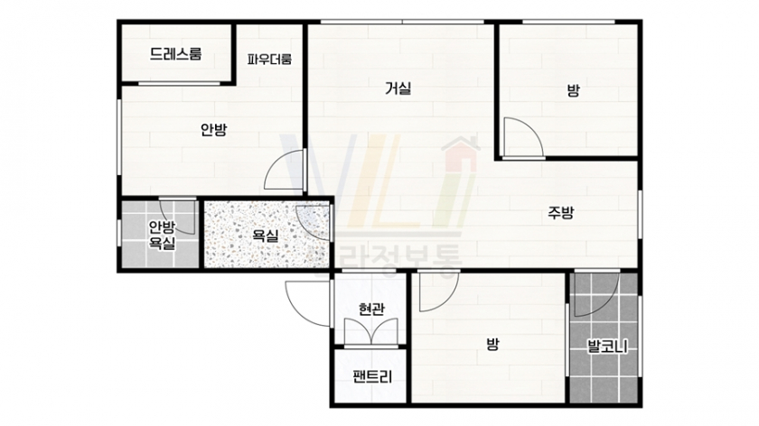 안방, 전실에 팬트리룸을 시공했어요.