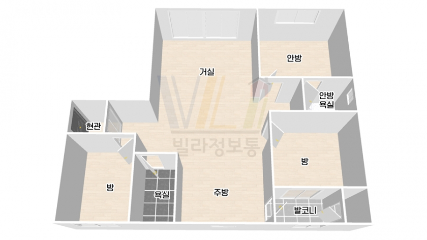 주방과 욕실 2개등 모든 공간에 창이 있어 환기가 잘 되겠습니다.