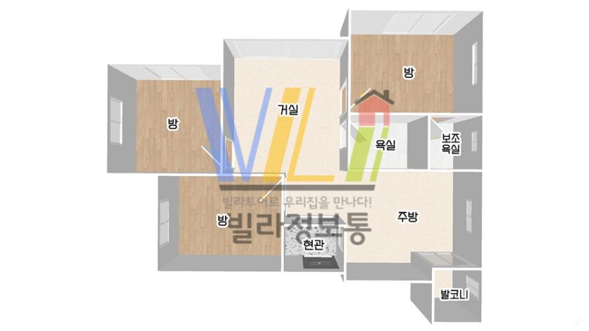 방 3개가 모두 널찍합니다. 세대별 창고가 있어요.