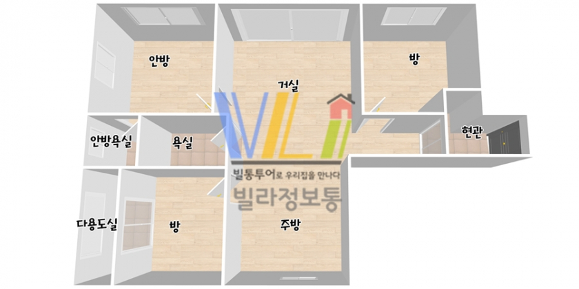 거실과 주방, 방들이 널찍하구요. 모든 공간에 에어컨이 설치되어 있어요! 붙박이장도 무상 옵션입니다.