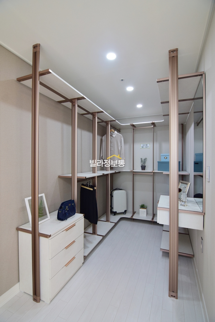 ■ 부평동신축빌라 현장은 공통옵션사항에 시스템 에어컨은 각 2대씩, 안방에는 드레스룸이 설치되었구요. 펜트리가 따로 있어 잔 짐 보관이 편리합니다.